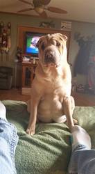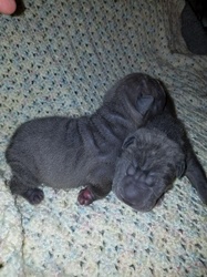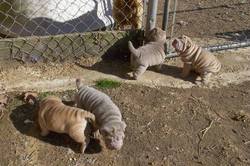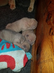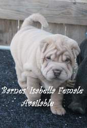 Bella is my sweet isabella brush coat girl. Her pedigree carries blue, isabella, red fawn, lilac, chocolate, cream and black. All the colors of the sharpei rainbow! She is Bred to our Lilac boy Raji and is due February 22, 2018